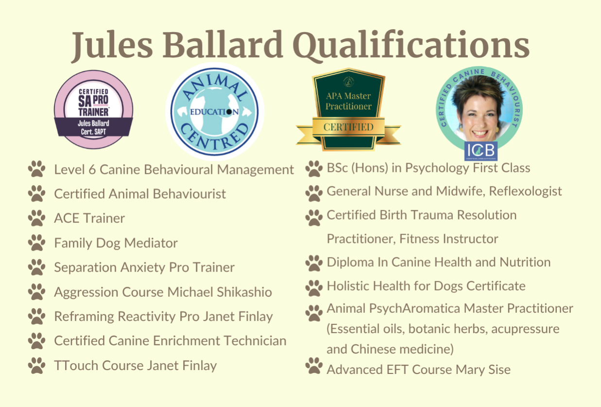 Jules is extremely knowledgable and compassionate. She loves her role and it shines through, I would (and have) recommended her. The reactivity course was informative, accessible and fun for us all.