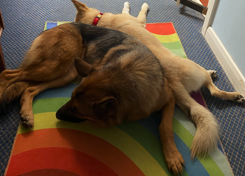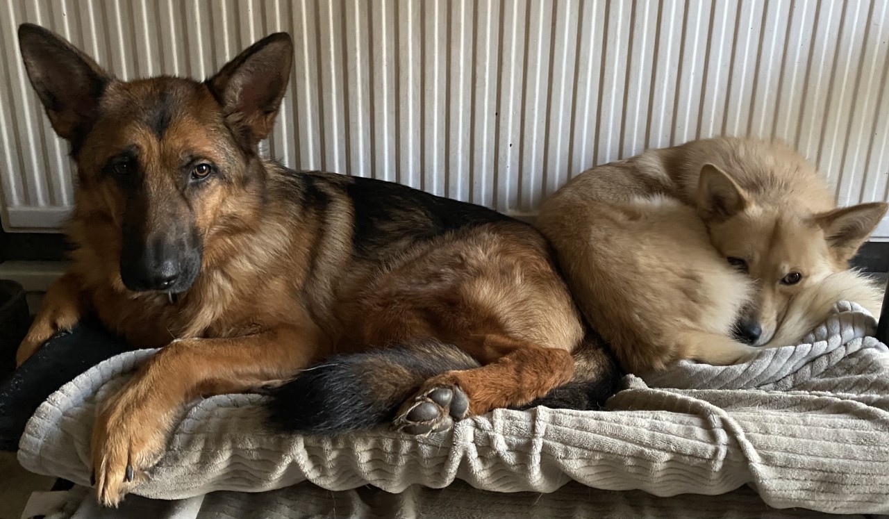 I live with my husband, Dakota, a GSD and Millie a Spitz/Husky cross.