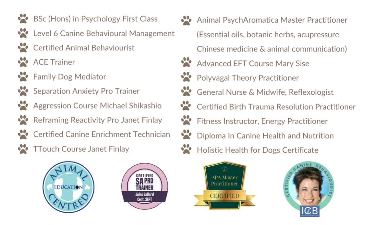Hi, I 'm Jules Ballard and I'm a practitioner of botanical self-healing and a certified behaviourist. I specialise in anxiety, trauma, fears and reactivity, helping humans, dogs, and cats find calm connection through compassionate, natural, and holistic support.